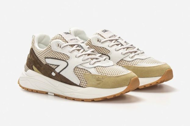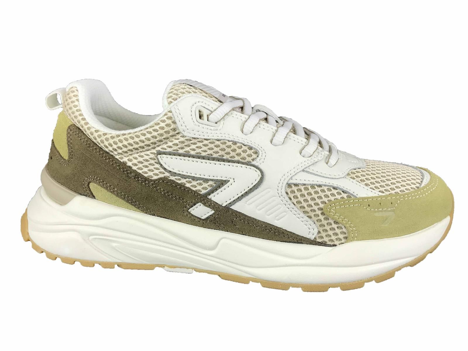 HUB Grid sneaker in groen en off-white. Comfortabele herensneaker met uitneembare binnenzool, ademende mesh en duurzame materialen. Ontdek bij Bonne Shoe.