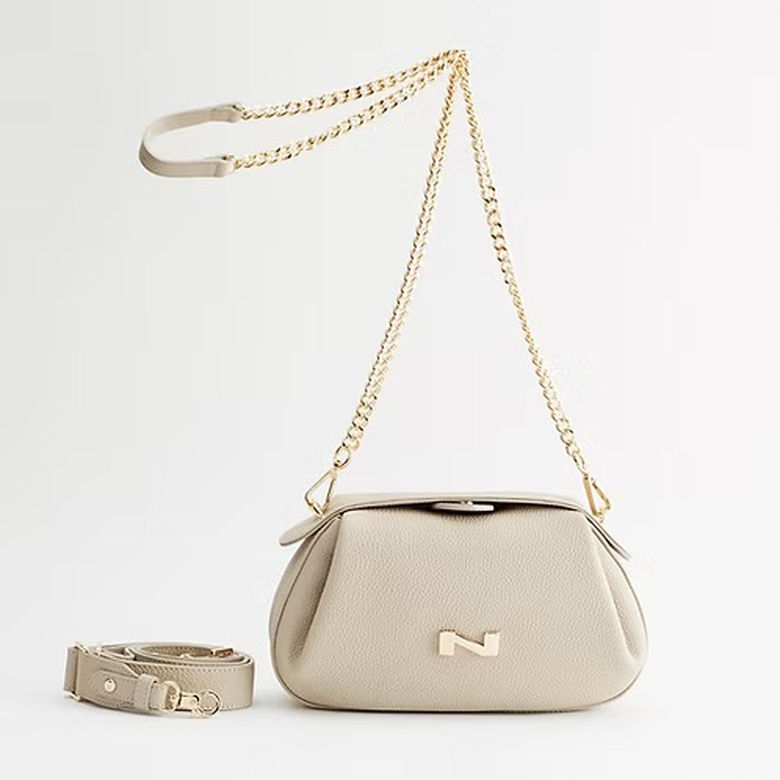 De zachte linen kleur geeft deze pouch bag een lichte, natuurlijke look die perfect aansluit bij het sobere en stijlvolle DNA van Nathan-Baume.
